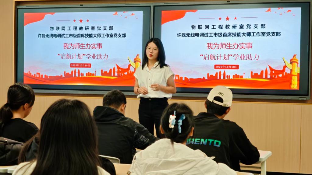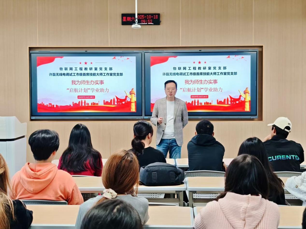 为扎实推进“我为师生办实事”实践活动走深走实,2025年10月18日,物联网工程教研室党支部联合许磊无线电调试工市级首席技能大师工作室党支部,赴南川校区面向大一新生组织开展了“启航计划”学业助力主题分享活动。
