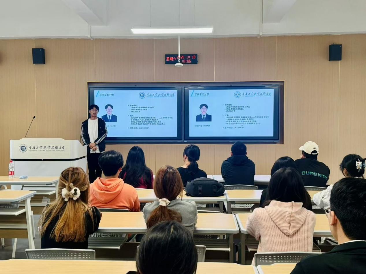 本次活动特邀党支部学生团队成员——2025年世界职业院校技能大赛总决赛人工智能赛道银奖获奖团队进行现场分享。学长们从专业认知、技能成长、学业规划等多个维度,结合备赛与实践经历,讲述在校训练、项目打磨、团队协作与时间管理等方面的经验与体会。在交流环节,新生踊跃提问,现场气氛热烈。多位新生表示收获显著,对“将学业目标与竞赛实践相结合”有了更清晰的路径认识。