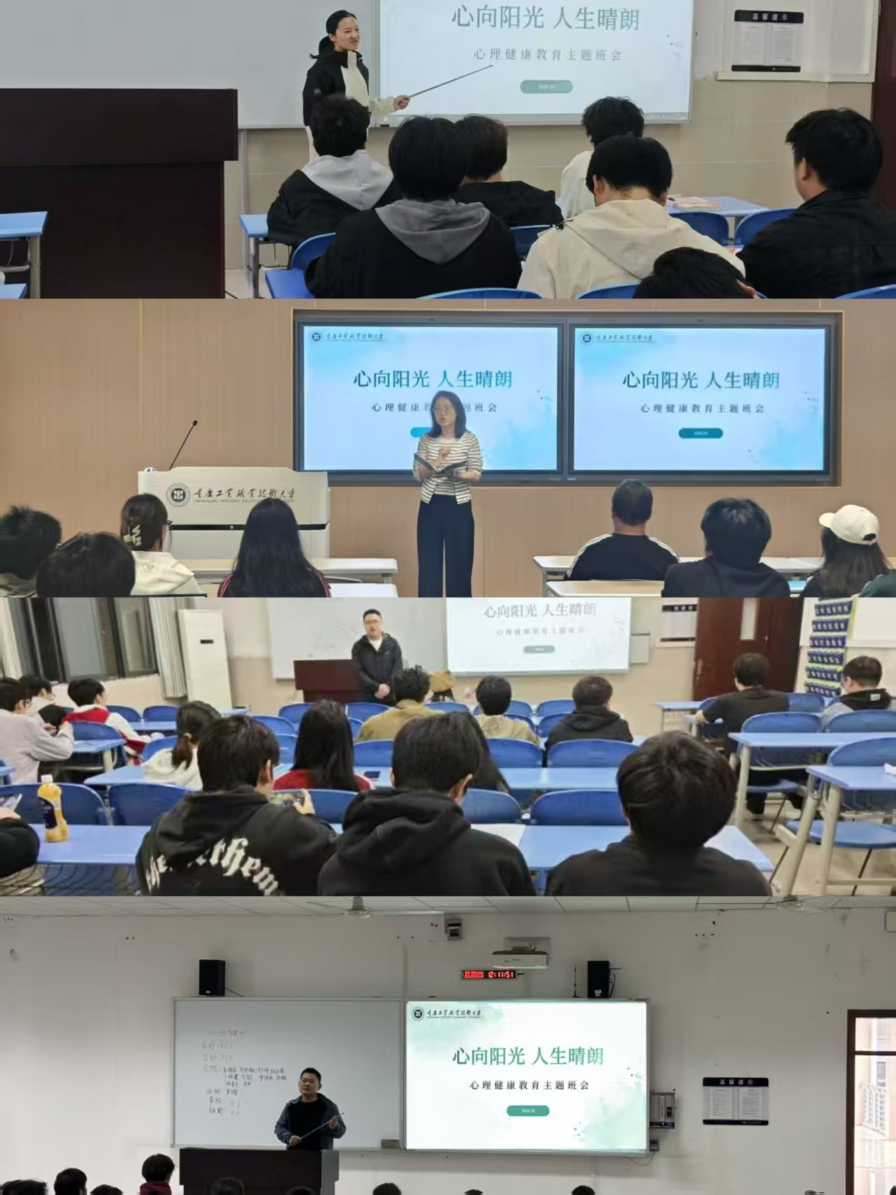 各班级辅导员与学生干部围绕 “学业压力缓解”“情绪管理技巧”“人际交往疏导” 三大核心议题展开分享。班会中,辅导员结合电子信息类专业学生常见的 “编程学习焦虑”“实验报告压力” 等场景,通过 “情绪树洞” 匿名分享、“压力拆解小组讨论” 等互动形式,引导学生坦诚交流内心困惑。同时,各班还播放了心理健康科普短片,讲解 “抑郁情绪与抑郁症的区别”“校园心理咨询室预约流程” 等实用内容,鼓励学生在遇到心理困扰时主动寻求帮助,养成 “积极倾诉、理性调节” 的健康心态。