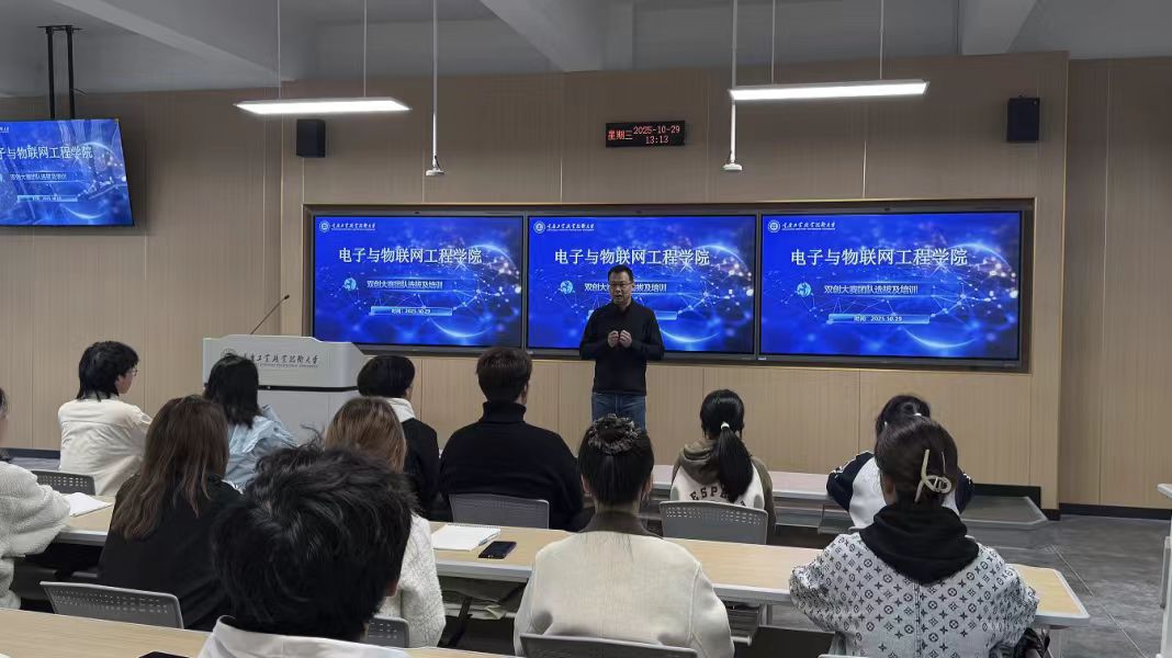 为进一步推动创新创业教育,激发学生的创新潜能与实践能力,10月29日,电子与物联网工程学院在南川校区第二教学楼316教室成功举办学院双创比赛团队招募选拔活动。学院党总支书记、副院长刘毅,团队指导老师古彬、黄进,全体辅导员共同出席本次活动。