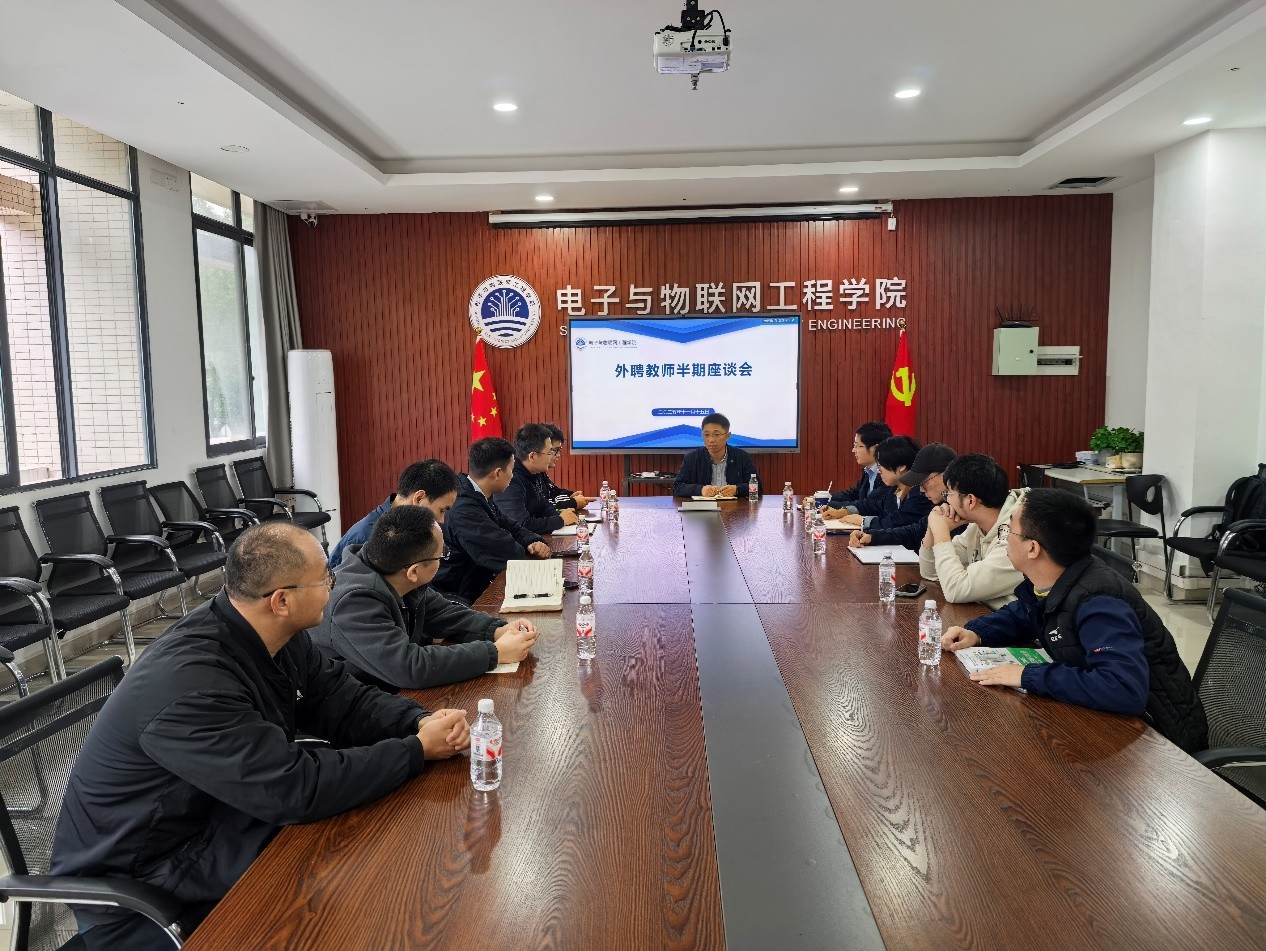 为全面复盘新学期半期教学工作,反馈学生座谈会意见建议,倾听外聘教师教学心声,及时解决教学过程中存在的问题,进一步优化教学管理、提升人才培养质量,2025年11月15日,电子与物联网工程学院在学院会议室召开外聘教师半期座谈会。学院副院长邱宇、二级督导组及全体外聘教师参加会议。