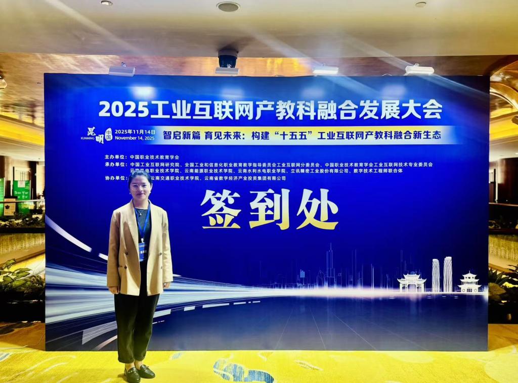 为落实教育强国规划纲要,推进工业互联网人才培养体系建设,加强数字人才培育,日前,由中国职业技术教育学会、全国工业和信息化职业教育教学指导委员会工业互联网分委员会主办的2025工业互联网产教科融合发展大会于11月13日至15日在昆明召开。我校电子与物联网工程学院物联网工程教研室主任、工业互联网技术专业负责人刘楠受邀参会。在本次大会上,数字技术工程师培育项目工业互联网工程技术人员(初级)第三批考核站点名单成功发布,我校成功获批成为重庆市高校中首个工业互联网工程技术人员(初级)考核站点。