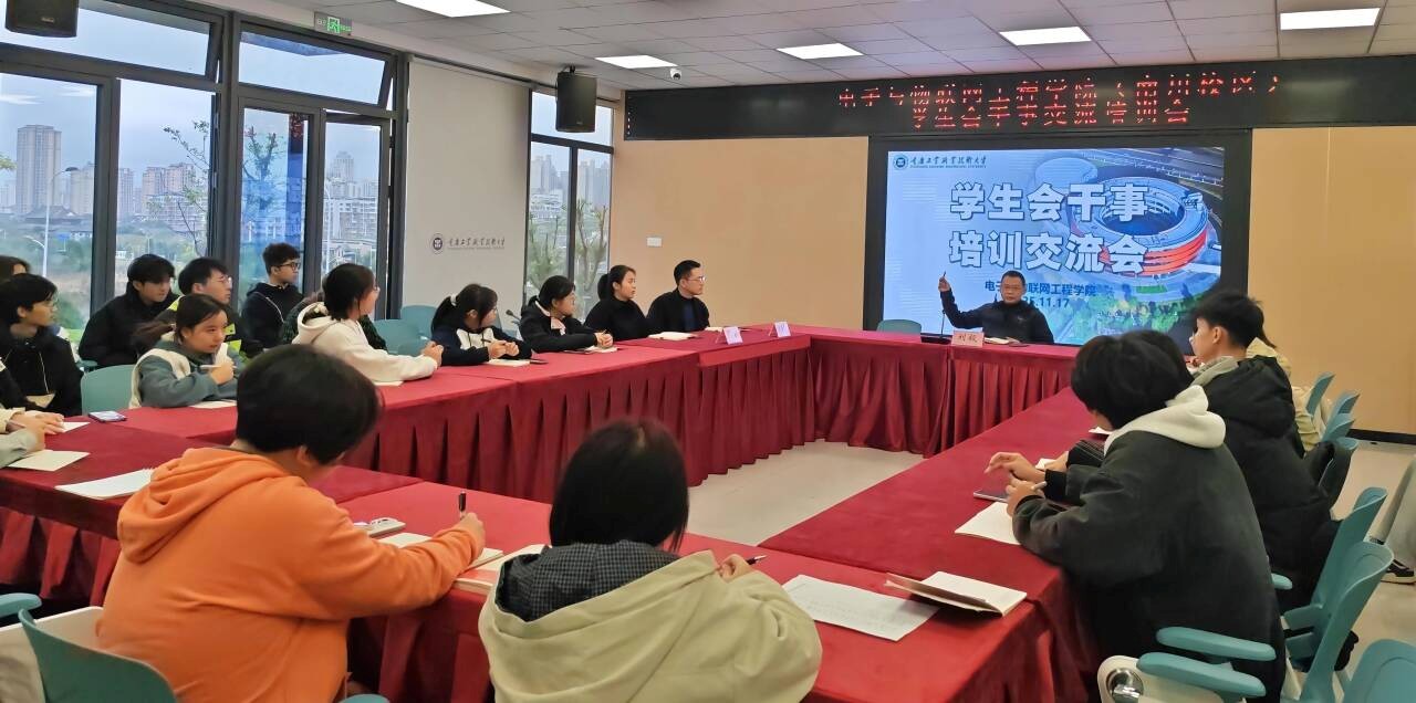 为帮助新入职学生会干事明晰职责方向、提升综合能力,进一步加强学生骨干队伍建设,2025年11月17日,电子与物联网工程学院在南川校区樱花苑二舍(8号楼)“一站式”学生社区风华厅顺利开展学生会干事培训大会。本次会议由党总支书记、副院长刘毅指导,南川校区辅导员及60余名学生会干事全体成员参加。