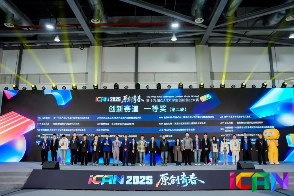 2025年11月28日,由中国创造学会主办的第十九届iCAN大学生创新创业大赛全国总决赛在杭州市国际博览中心圆满落幕。我校电子与物联网工程学院学生团队凭借过硬的专业素养与创新实力,在全国众多参赛队伍中脱颖而出,成功斩获大赛一等奖。