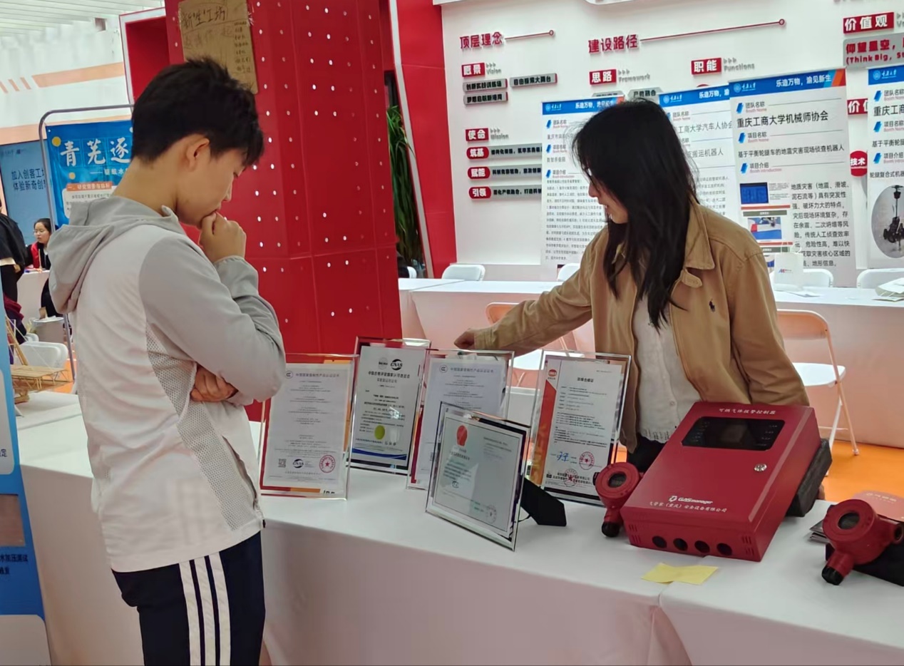 本次参展由我院工业互联网技术专业大三学生、气管家(重庆)安全设备有限公司法定代表人冯大柽带队,团队成员包括在公司全职工作的2025届毕业生黎远江、唐万密,2026届实习生申登齐、胡联乾,在校大二学生宋苗卓、陈代颖等。团队现场展示了自主研发的智能气体检测系统设备、CNAS校准服务体系及云平台管控方案,清晰呈现项目在多家企业的落地应用成果,吸引现场高校师生与行业人士驻足交流。